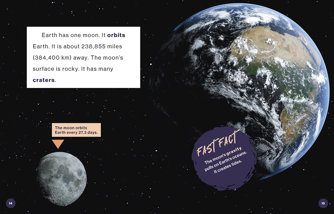 This fascinating book provides an out-of-this-world look at Earth, featuring facts about its size, unique features, atmosphere, orbit, and more. Short paragraphs of easy-to-read text are paired with colorful images to make reading engaging and accessible. The book also includes a table of contents, fun facts, sidebars, comprehension questions, a glossary, an index, and a list of resources for further reading. Apex books have low reading levels (grades 2–3) but are designed for older students, with interest levels of grades 3–7.
