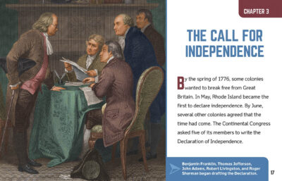 This informative title explores the history leading up to the Declaration of Independence, the significance of this milestone, and how this milestone changed the United States. A special feature delves into a primary source from this time period. The book also includes several informative sidebars, a table of contents, a reading comprehension quiz, a glossary, additional resources, and an index. This Focus Readers book is at the Navigator level, aligned to reading levels of grades 3–5 and interest levels of grades 4–7.