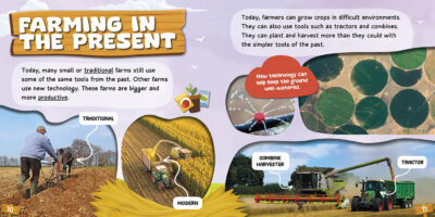Learn how farmers of the past, present, and future use fascinating techniques, equipment, and practices to produce successful crops and products. Color photographs and simple language make these global subjects suitable for early readers. This book also includes a table of contents, a glossary, and an index.