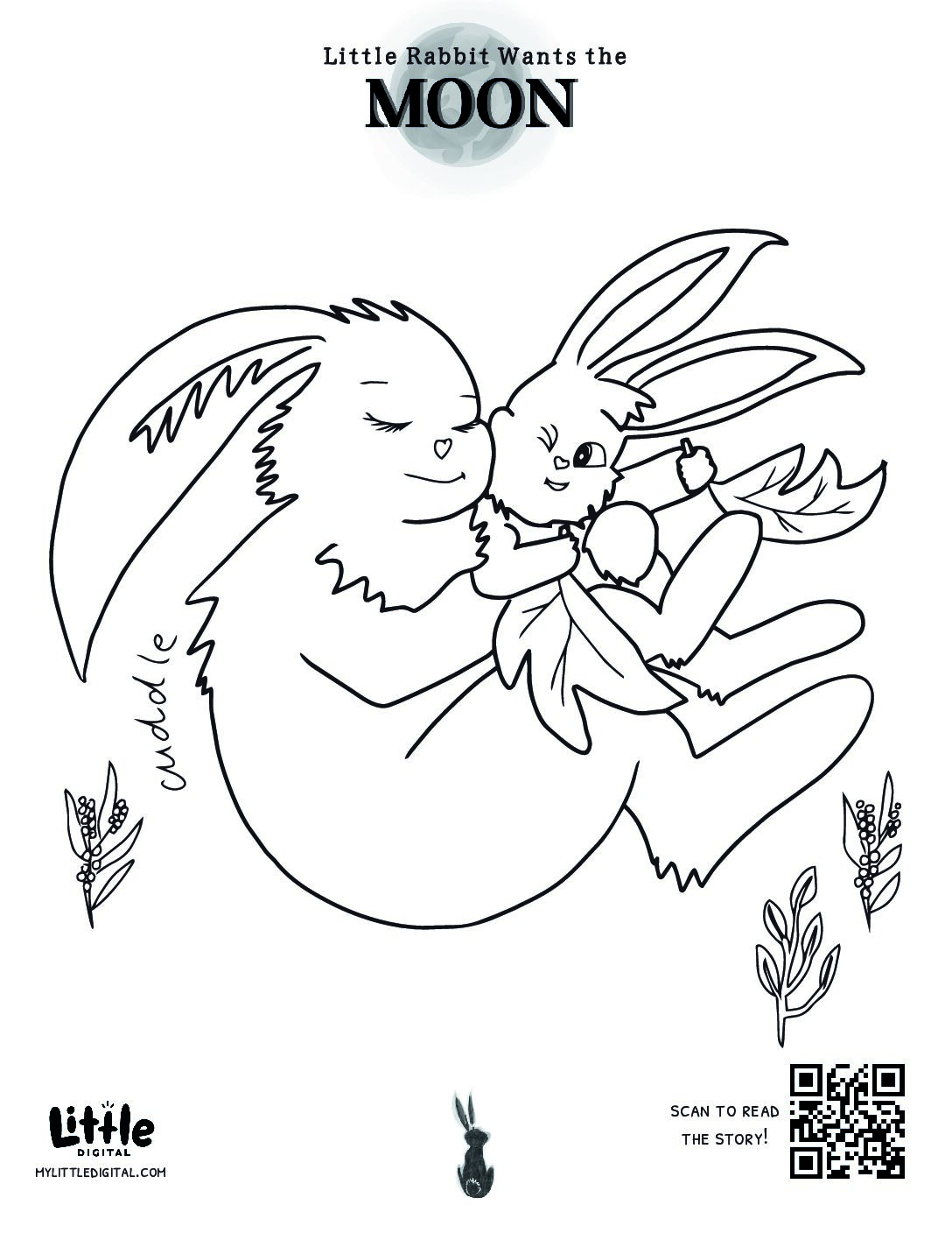 Little Rabbit can’t sleep. His brothers and sisters may be snuggled up beside him, but the glowing moon in the night sky has captivated Little Rabbit, and he wants nothing more than to reach up and touch it. But how can such a small rabbit reach something so far away?